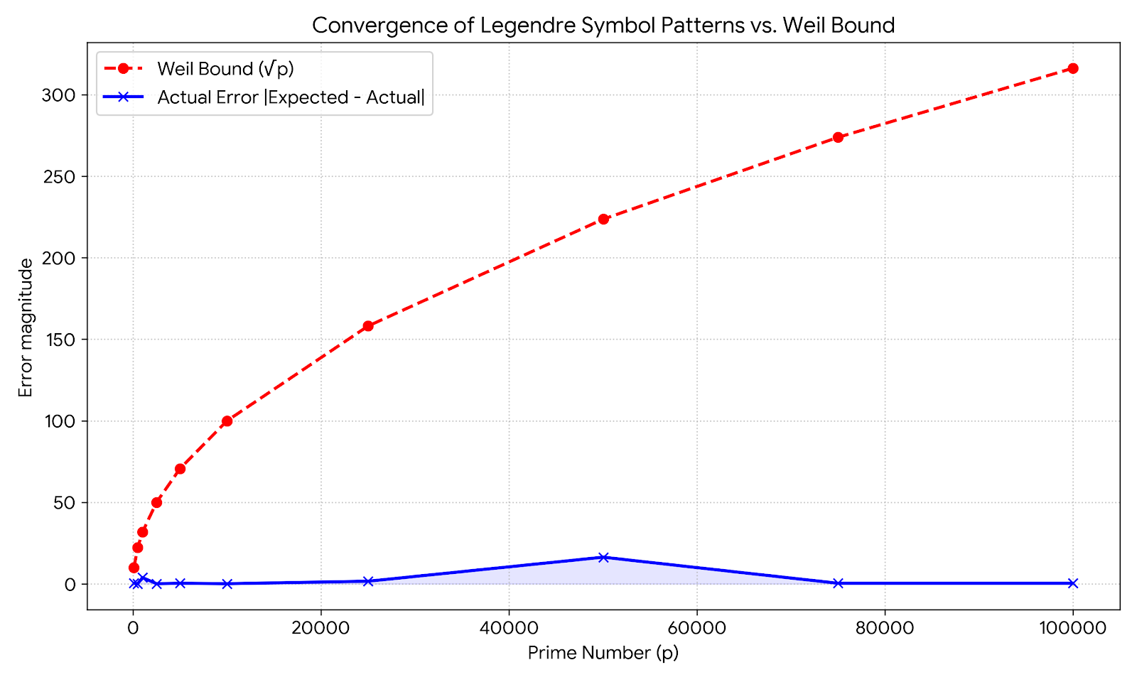 Before we trust a sequence for cryptography, we must be convinced it actually behaves like unpredictable noise. If you calculate the Legendre symbol for consecutive integers $1, 2, 3, \dots$, you get a string of $+1$s and $-1$s. The Weil Bound provides the theoretical guarantee that this sequence is virtually indistinguishable from a series of fair coin flips.